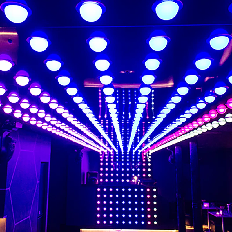 स्वतंत्र पिक्सेल नियंत्रण: स्टेज एलईडी पिक्सेल सीलिंग लाइट की प्रत्येक इकाई एक स्वतंत्र पिक्सेल के रूप में कार्य करती है। जब पेशेवर प्रकाश सॉफ़्टवेयर के साथ जोड़ा जाता है, तो यह अविश्वसनीय रूप से जटिल 3डी स्थानिक दृश्य प्रभावों के निर्माण को सक्षम बनाता है।